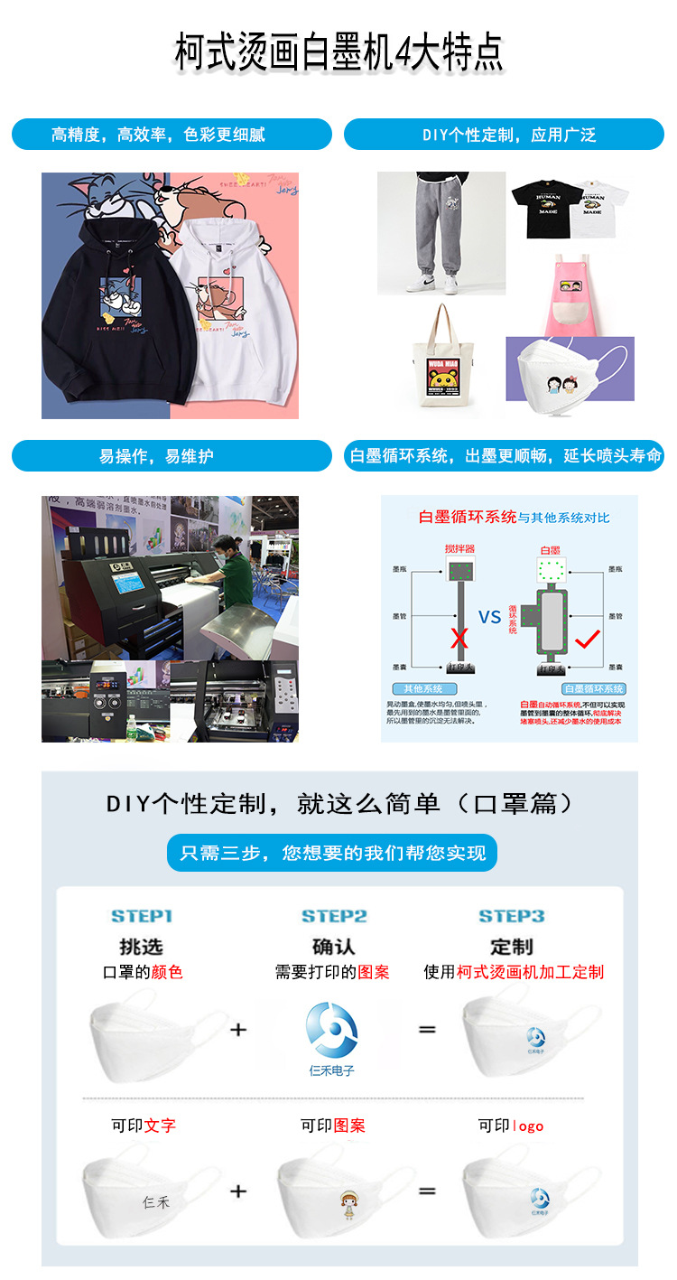 免排版柯式数码白墨烫画机t恤服装热转印打印抖粉机个性diy