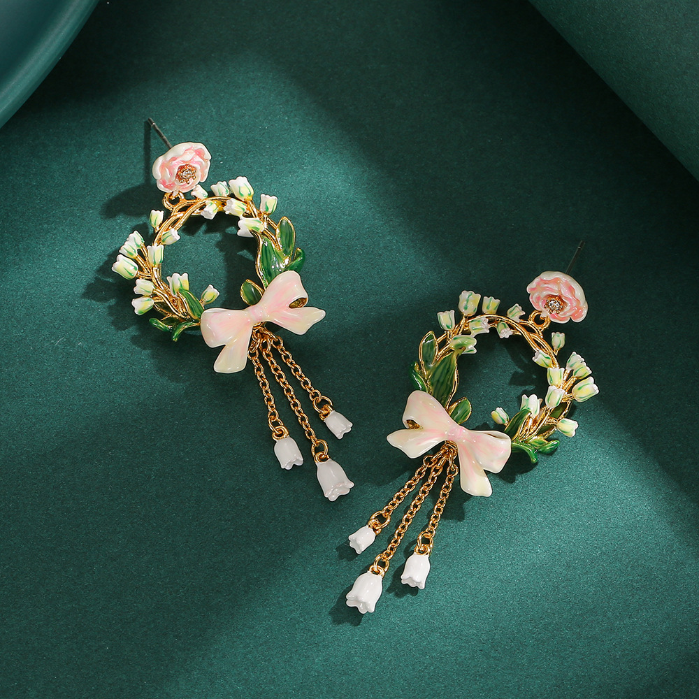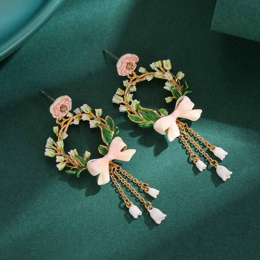 轻奢高级感原创珐琅粉色玫瑰蝴蝶结铃兰花长款流苏项链花环锁骨链